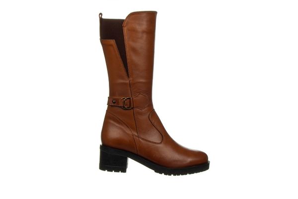 Kozaki marki Bayla wykonane z wysokiej jakości skóry naturalnej licowej w kolorze brązowym.Kozaki o klasycznej cholewce kończącej się nad połową łydki. Model zdobi efektownie wkomponowana elastyczna gumka ułatwiająca zakładanie i zdejmowanie obuwia oraz pasek z klamrą po zewnętrznej stronie. Kozaki na wygodnym obcasie. Podeszwa z antypoślizgowej gumy izoluje stopy od zimnego podłoża.Kozaki Bayla to doskonałe […]