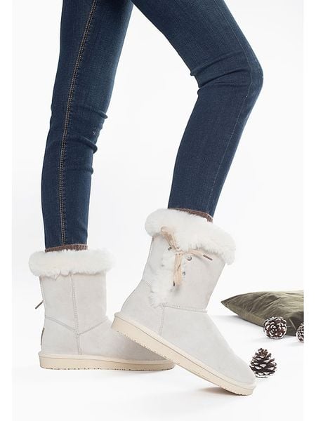 – skóra welurowa- zapięcie: bez- noski: zaokrąglone- wyściółka: ogrzewająca wełna- detale: ozdobne wiązanie- dookoła gumowanie- podeszwa: antypoślizgowa