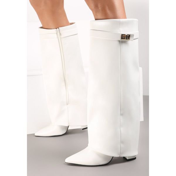 Białe Kozaki z Szeroką Cholewką i Szpiczastym Noskiem Sumehra