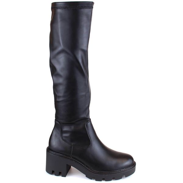 Kozaki damskie na słupku i platformie elastyczne ocieplane czarne Potocki SZ12267