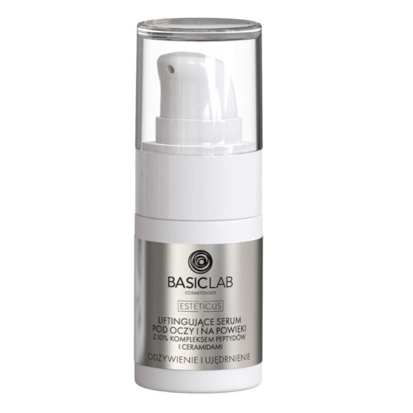 BasicLab Liftingujące Serum Pod Oczy i Na Powieki z 10% Kompleksem Peptydów i Ceramidami Odżywienie i Ujędrnienie Serum pod oczy 15 ml