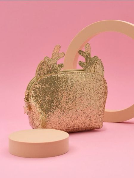 Sinsay – Kosmetyczka – złoty – cekinowe wykończenie,ozdobne uszy renifera,zawieszka w kształcie gwiazdki,zapinana na zamek,motyw świąteczny