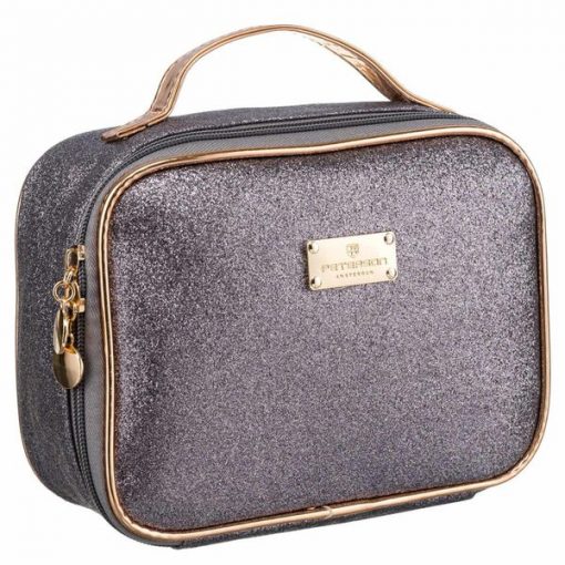 Brokatowa kosmetyczka damska Peterson z uchwytem, idealna na podróż. Wykonana z wytrzymałego materiału, posiada pojemną komorę, organizer na pędzle i solidny zamek. Elegancki design i praktyczny układ zapewniają komfort użytkowania.