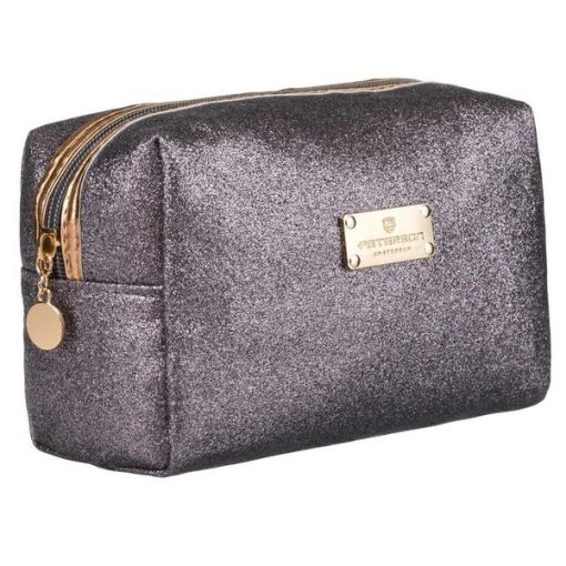 Brokatowa kosmetyczka damska Peterson, idealna na podróż. Prostokątny kształt, wytrzymały materiał i pojemne wnętrze zapewniają wygodne przechowywanie akcesoriów. Elegancja i praktyczność w jednym.
