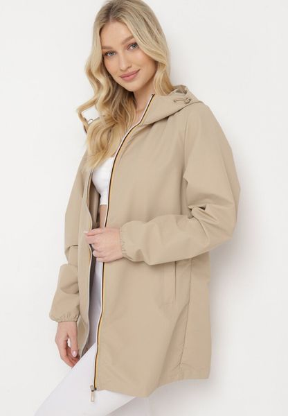 Beżowa Kurtka Wiatrówka na Zamek Błyskawiczny z Kapturem Radisca