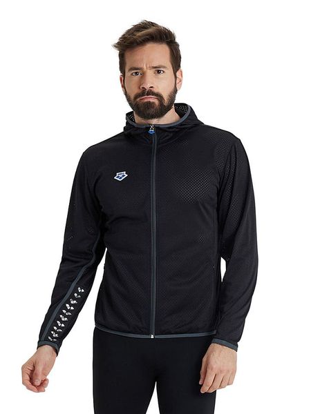 – szybkoschnący materiał- oddychalność- kaptur: tak- kołnierz: stójka- zapięcie: suwak- zasuwane kieszenie boczne: 2- krój: wąski- nadruk: logo- look: jednokolorowy