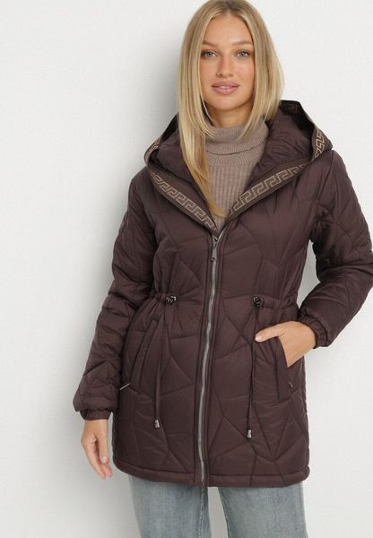 Brązowa Pikowana Kurtka z Kapturem i Ściągaczami w Talii Tiobelle