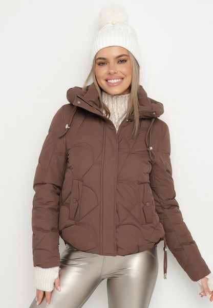 Brązowa Pikowana Kurtka o Pudełkowym Kroju z Kapturem i Ściągaczami Selizola