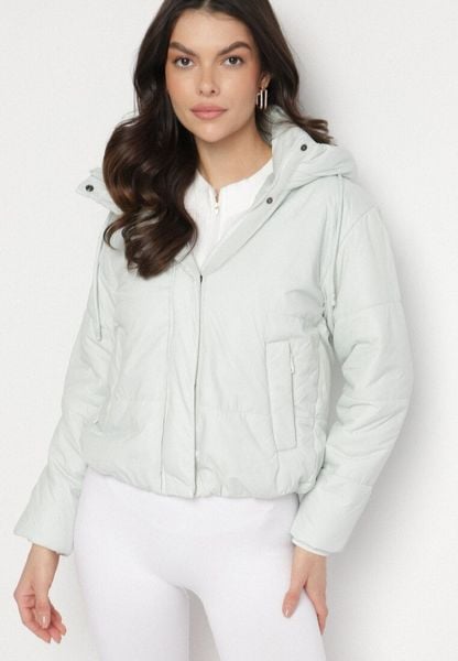 Miętowa Pikowana Kurtka z Kapturem i Lekkim Ociepleniem Ninirila