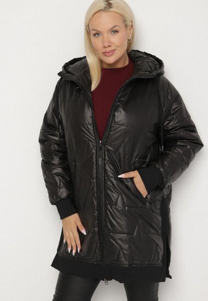 Czarna Kurtka z Pikowanymi Przeszyciami i Kapturem Zarimelia