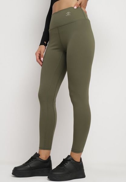 Ciemnozielone Legginsy Sportowe z Wysokim Stanem i Drobnym Nadrukiem Leridra