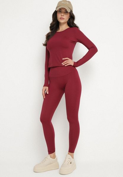 Bordowy Komplet Sportowy Legginsy i Bluzka z Długim Rękawem Toretta