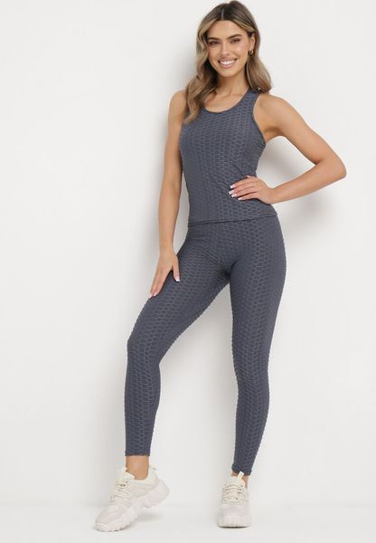 Ciemnoszare Legginsy Sportowe z Elastyczną Gumką i Tłoczonym Wzorem Ardisa