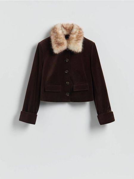 Marynarka z kołnierzem z imitacji futra – ciemnobrązowy