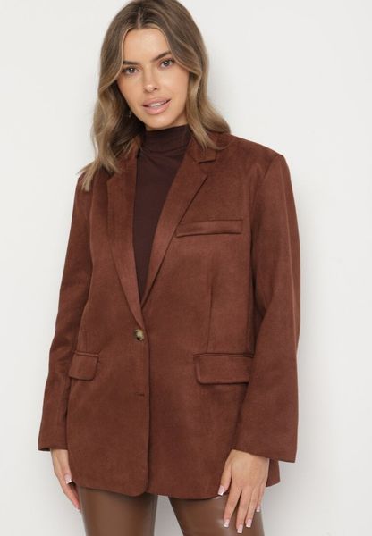 Brązowa Pudełkowa Marynarka Jednorzędowa Stylizowana na Zamszową Zenitta
