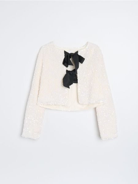 Sinsay – Żakiet z ozdobnymi wiązaniami – kremowy –