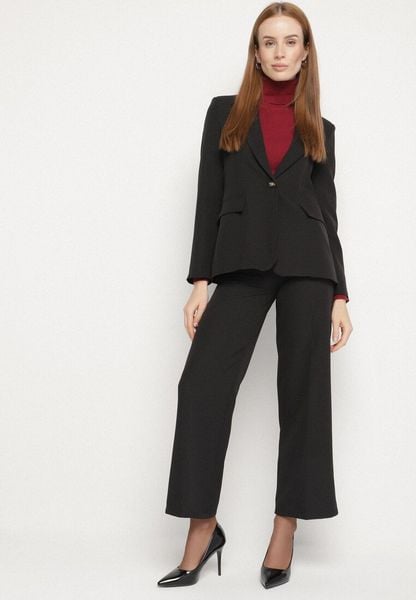 Czarny Komplet Garniturowy z Wiskozą Marynarka na Guzik i Szerokie Spodnie Tevora