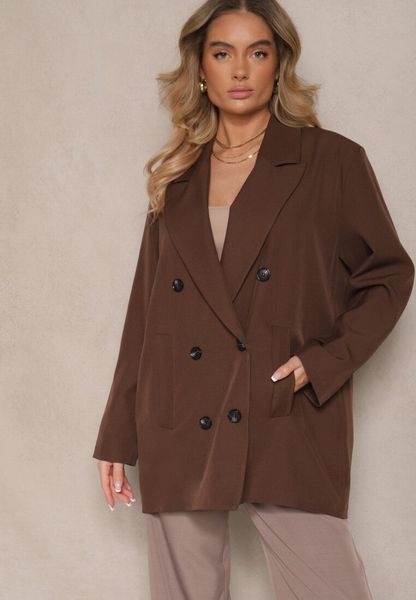 Brązowa Marynarka Dwurzędowa o Przedłużonym Fasonie Pilinne