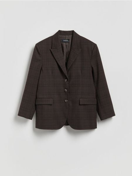 Jednorzędowa marynarka w kratę – ciemnobrązowy