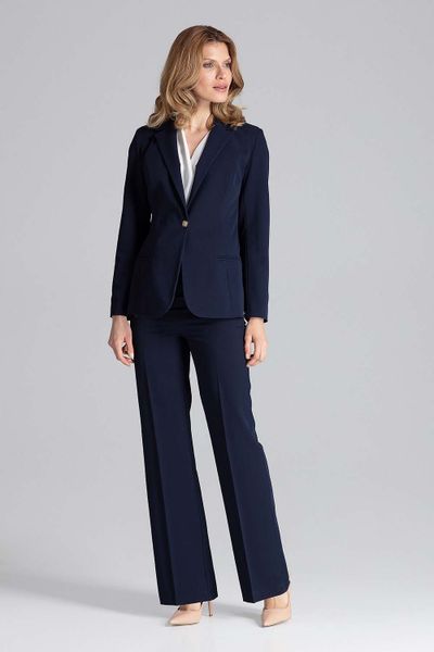 Klasyczny Granatowy Żakiet na Jeden Guzik z Kolorową Podszewką