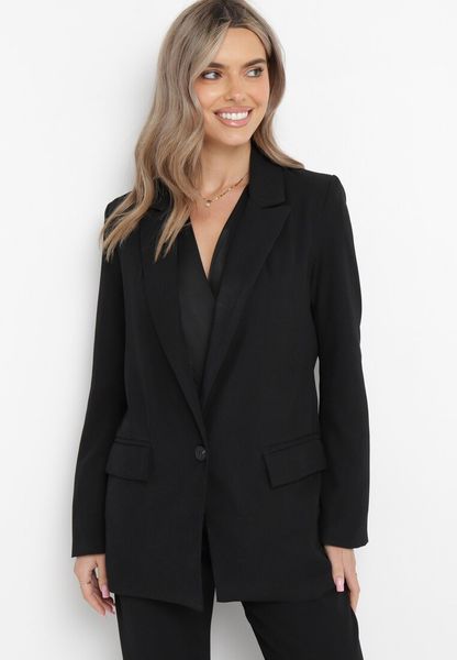 Czarna Marynarka Zapinana na Guzik z Kieszeniami Polxeni
