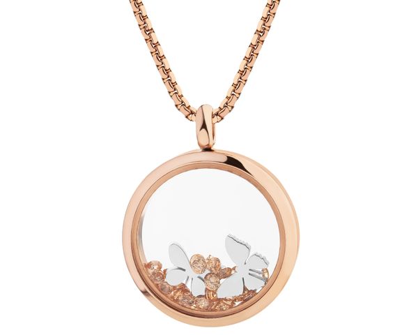 Naszyjnik ze stali szlachetnej z cyrkoniami i szklanymi detalami – motyle