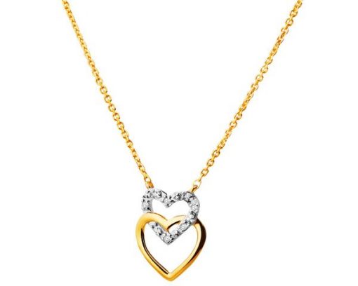 Naszyjnik z żółtego złota z diamentami – serca – 0,01 ct – próba 375