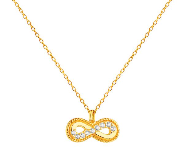 Złoty naszyjnik z cyrkoniami, ankier – nieskończoność – AP533-9082. Żółte złoto