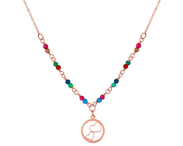 Złoty naszyjnik ze szkłem, ankier – koło, serca – AP534-3359. Różowe złoto