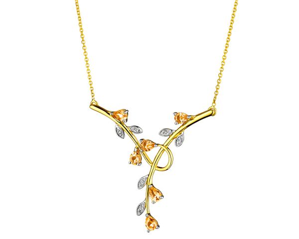 Naszyjnik z żółtego złota z diamentami i cytrynami – liście – próba 375 – 109.491. Żółte złoto rodowane