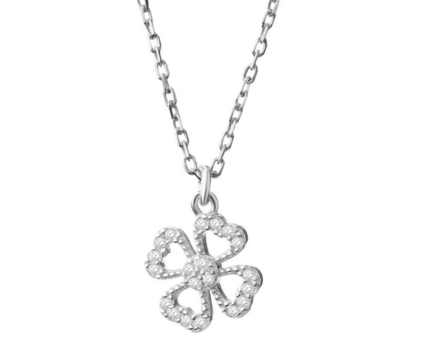 Naszyjnik srebrny z cyrkoniami – koniczyna – AP536-9311. Srebro rodowane