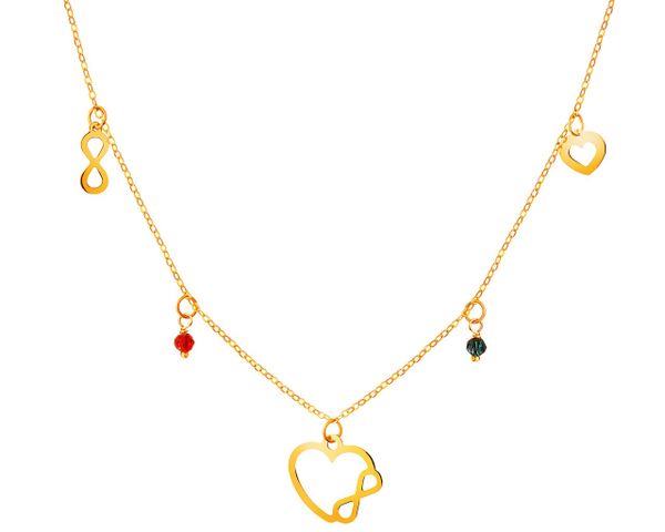 Złoty naszyjnik ze szkłem, ankier – serca, nieskończoności – AP532-5428. Żółte złoto