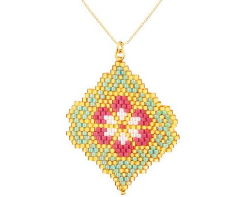 Złoty naszyjnik z koralikami – kwiat – AP537-6602. Żółte złoto