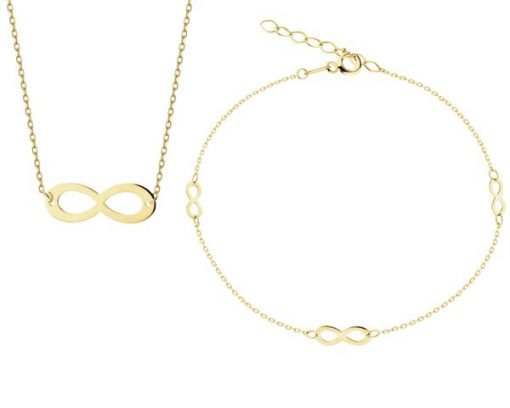 Złota bransoletka i naszyjnik – komplet – nieskończoności – AP538-7923. Żółte złoto