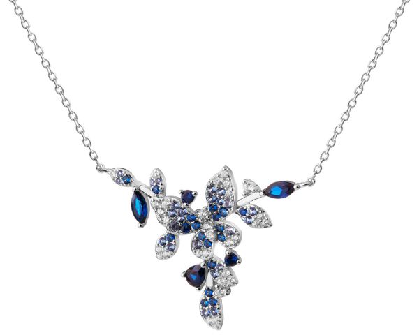 Naszyjnik srebrny z cyrkoniami – motyl, liście – AP536-7081. Srebro rodowane