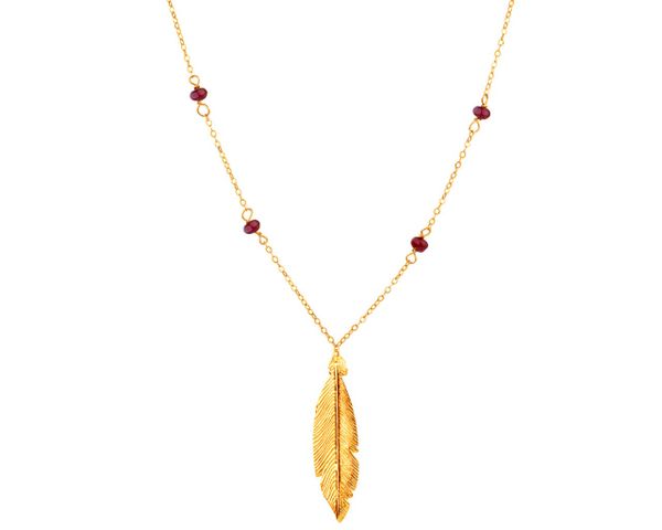 Złoty naszyjnik z cyrkoniami, ankier – piórko