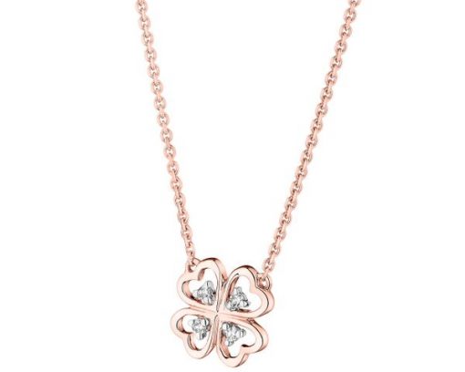 Naszyjnik z różowego złota z diamentami – koniczyna – 0,02 ct – próba 375 – 109.761. Różowe złoto rodowane