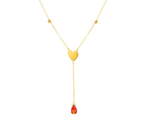 Złoty naszyjnik ze szkłem, ankier – serce – AP533-2607. Żółte złoto