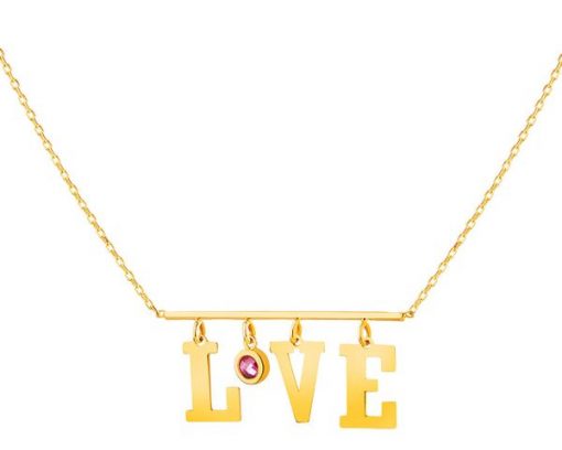 Złoty naszyjnik z cyrkonią – love – AP534-1932. Żółte złoto