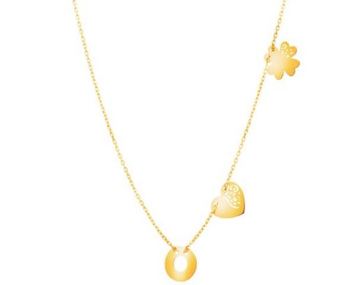 Złoty naszyjnik , ankier – koniczyna, serce, koło – AP530-0512. Żółte złoto