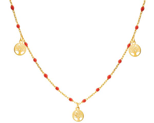 Złoty naszyjnik z emalią – drzewa – AP527-7598. Żółte złoto