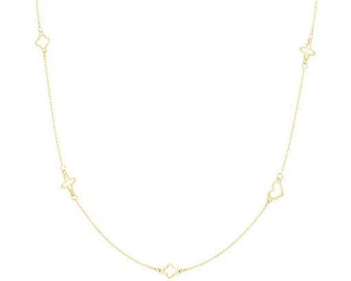 Złoty naszyjnik, ankier – koniczyny, serce, kwiaty