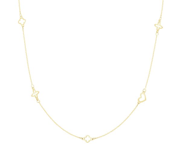 Złoty naszyjnik, ankier – koniczyny, serce, kwiaty – AP538-2561. Żółte złoto