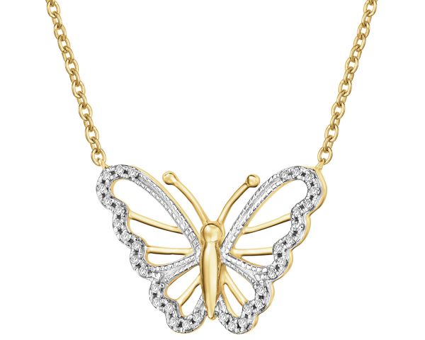 Naszyjnik z żółtego złota z diamentami – motyl – 0,05 ct – próba 375 – 172.180. Żółte złoto rodowane