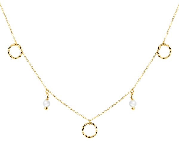 Złoty naszyjnik z perłami – koła – AP541-7667. Żółte złoto