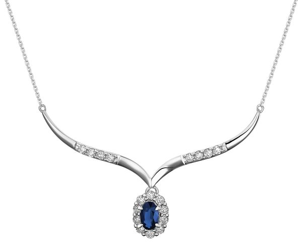 Naszyjnik z białego złota z brylantami i szafirem – próba 585 – 110.490. Białe złoto rodowane