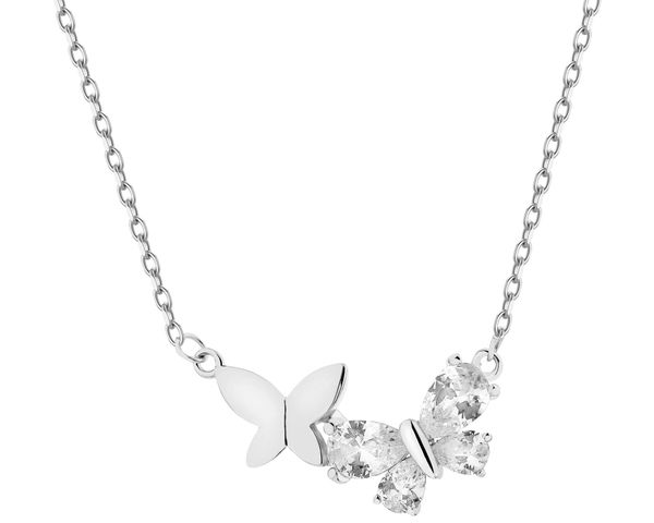 Naszyjnik srebrny z cyrkoniami – motyle – AP537-8903. Srebro rodowane