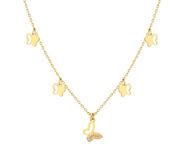 Naszyjnik srebrny z cyrkoniami – motyle – AP534-4445. Srebro pozłacane