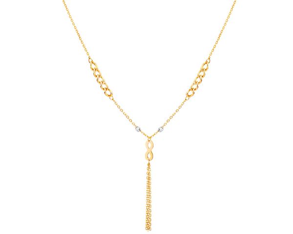 Złoty naszyjnik, ankier – nieskończoność, kulki – AP534-0361. Żółte złoto rodowane