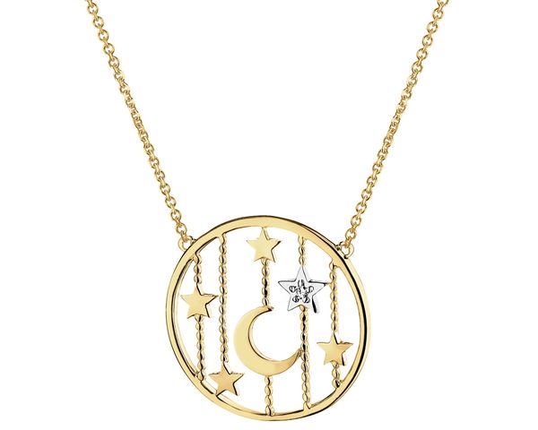 Naszyjnik z żółtego złota z diamentem – gwiazdy, Księżyc – 0,005 ct – próba 375 – 110.933. Żółte złoto rodowane